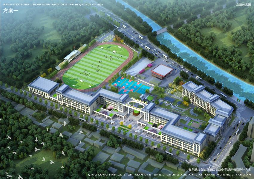 項(xiàng)目簡介:項(xiàng)目位于河北省秦皇島市青龍縣,占地約88畝,共24軌72個(gè)教學(xué)班,建筑面積為58000平方米。由于場內(nèi)中間存在一處已建成的地下人防工程,導(dǎo)致學(xué)校的布局方式較為獨(dú)特。